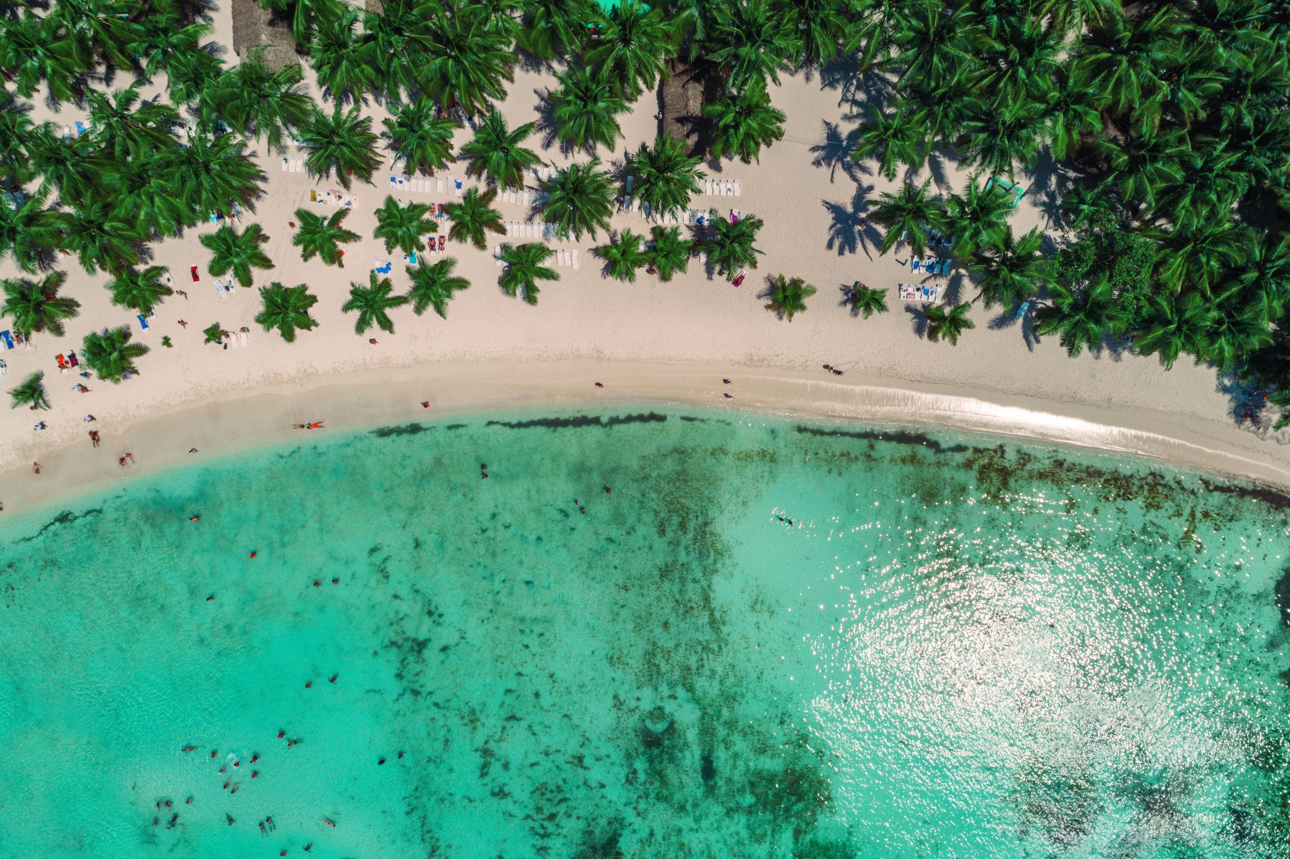Aerial view of tropical island beach, Dominican Republic