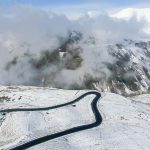 Aerial View Of A Car Driving Along a snowy S Curve From Wintry Davos To St. Moritz, Switzerland – Drone footage on HOsiHO.com
