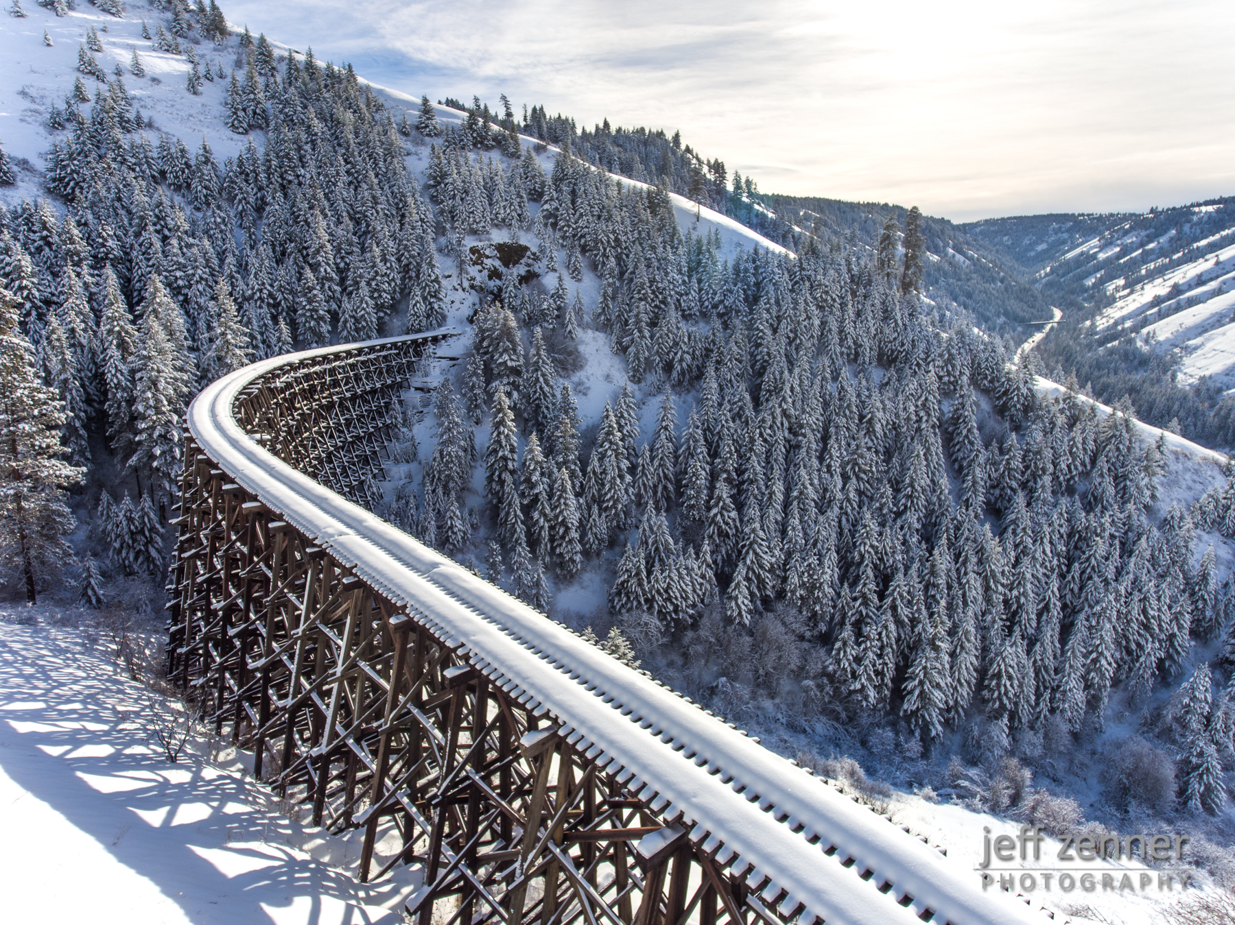 Winter over the Half Moon railroad trestle in north central Idaho!