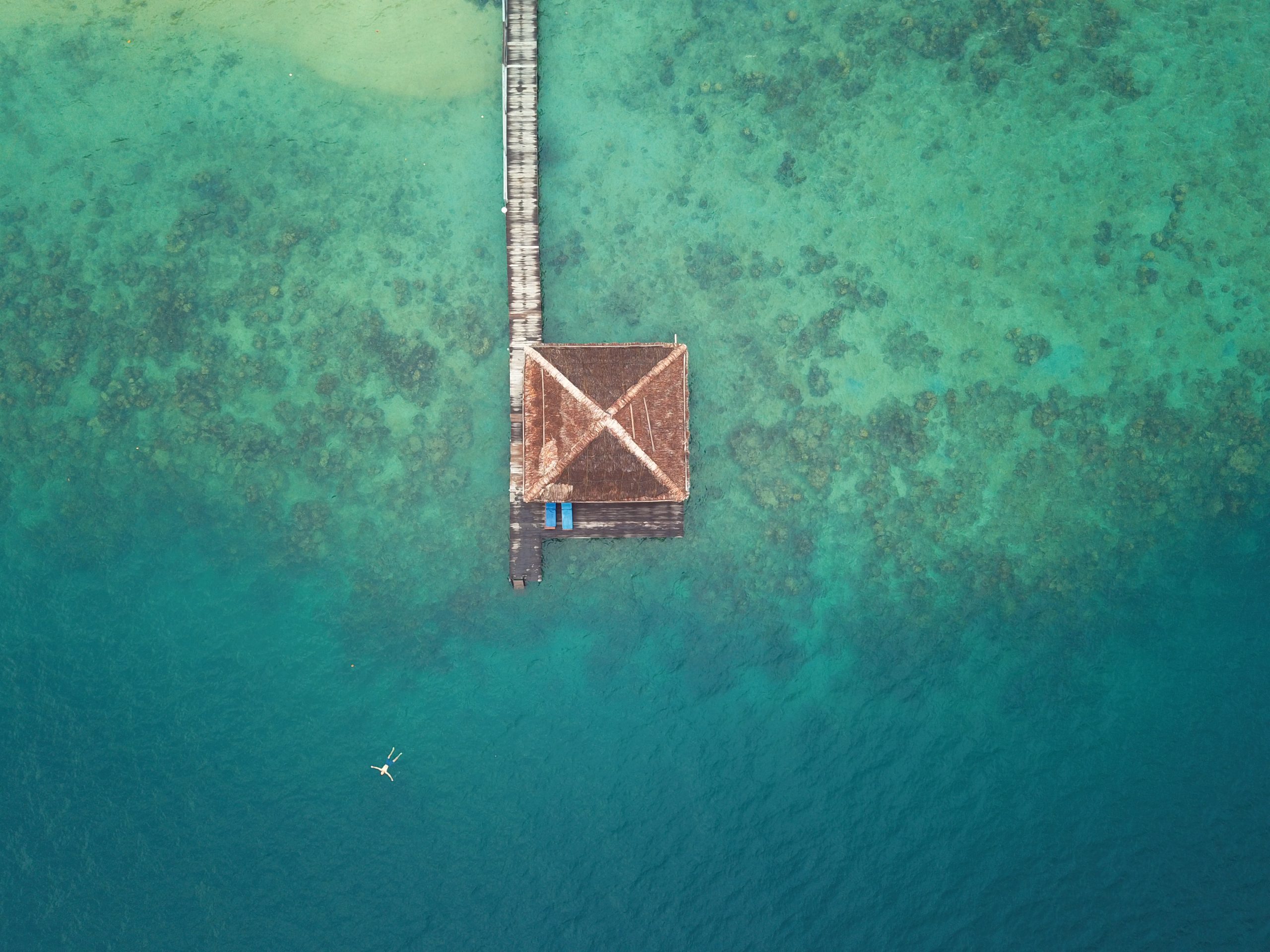 I was with a friend in Sumatra, Indonesia. He was controlling the drone, hiding in the bungalow. I was floating in the sea. He went really high with it and we took this photo.