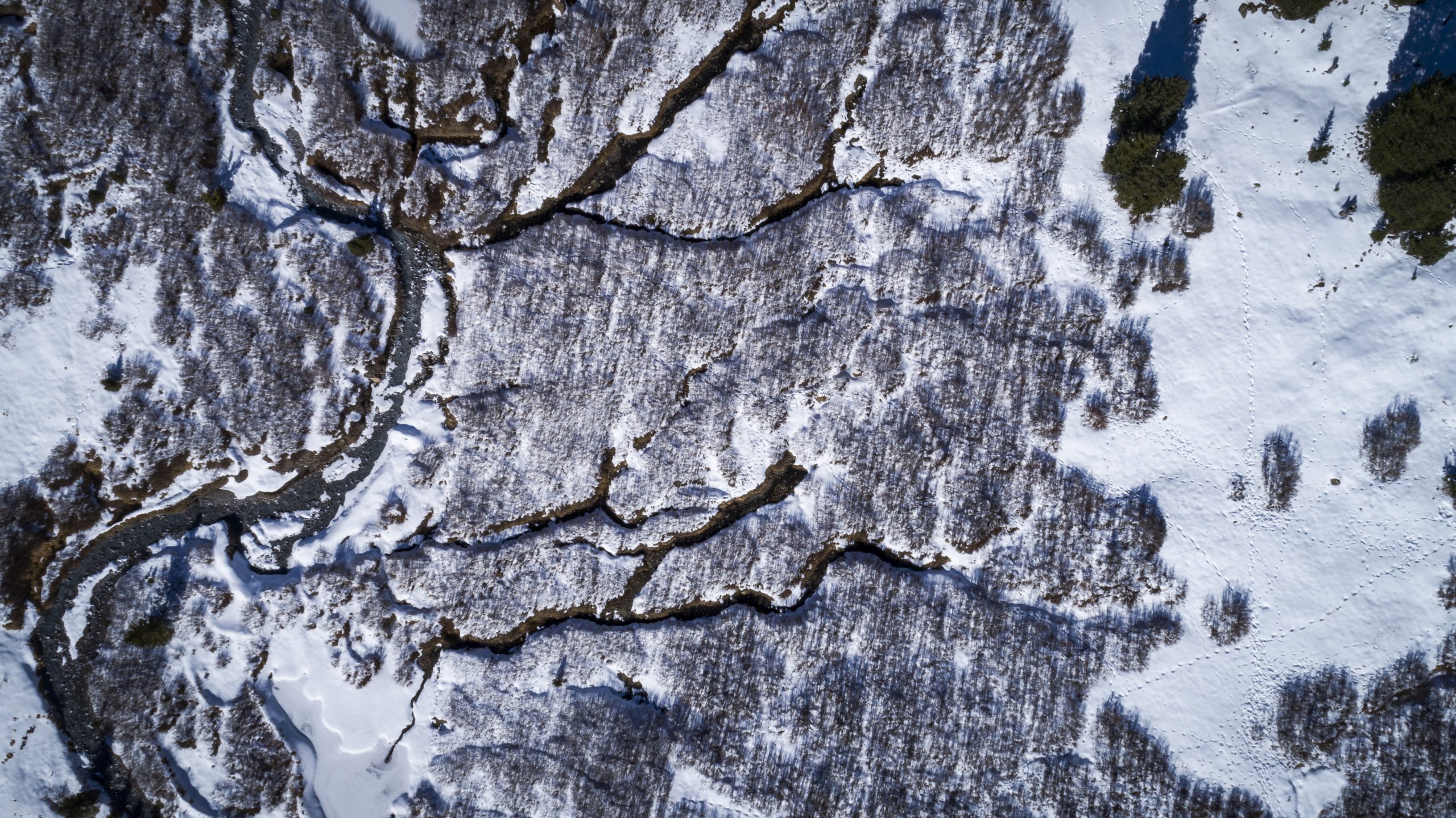 Footprints of animals lead to Montezuma Creek after a late fall snow.