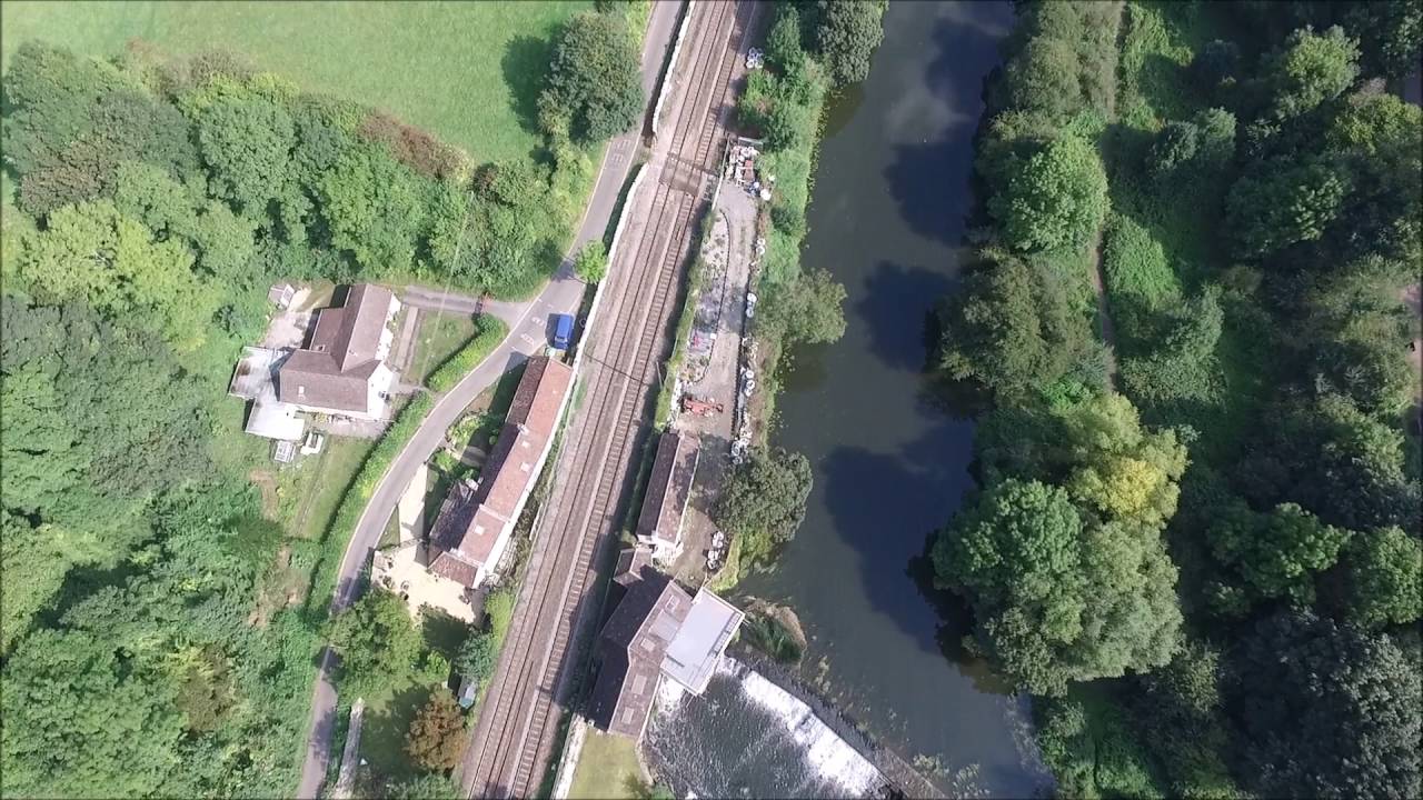 Taking in the Canal Aquaduct (built 1801) over the railway and River Avon, The Cross Guns Pub (built late 1600s), Avoncliff Station (a request stop), a hydro-electric water wheel.