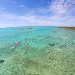 Kitesurf riding the lagoon of Babaomby