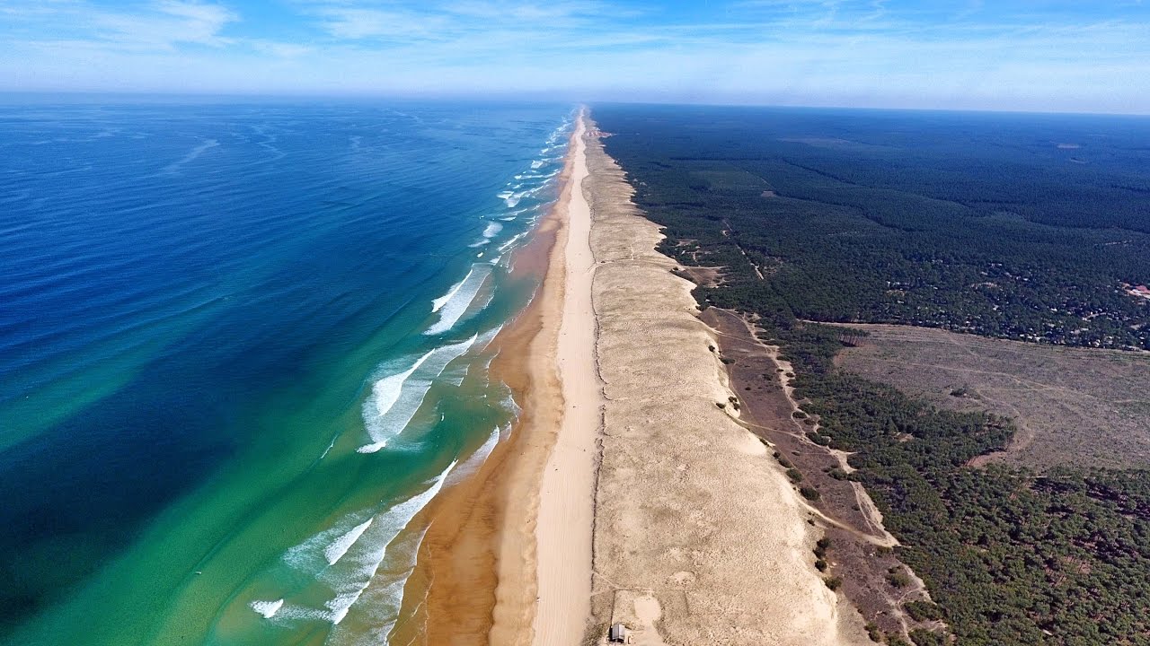 Overflight by the drone of the beach of the lette white in the region of Landes.
