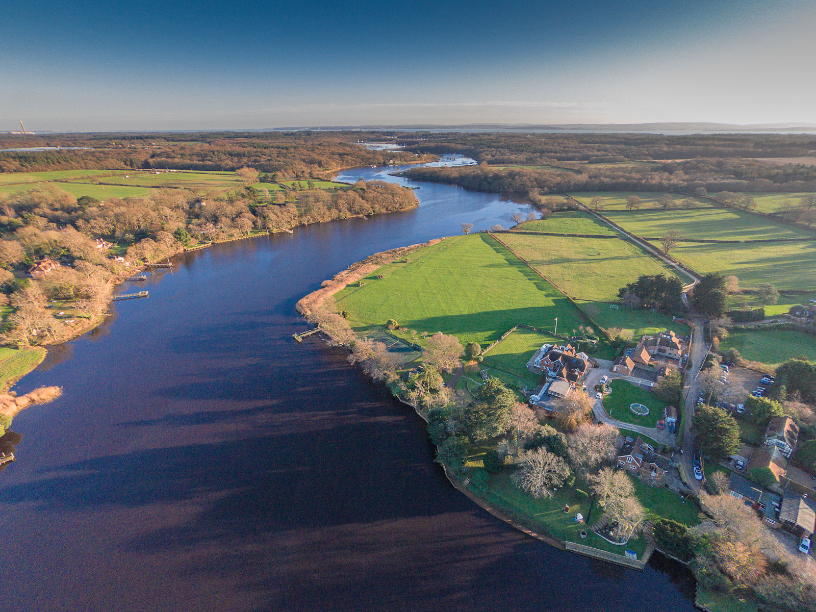 Beaulieu River, looking towards the coast, with the Isle of Wight on the horizon.