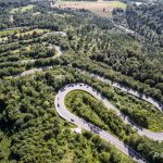 Aerial view of road with hairpin turns in Bieszczady mountains