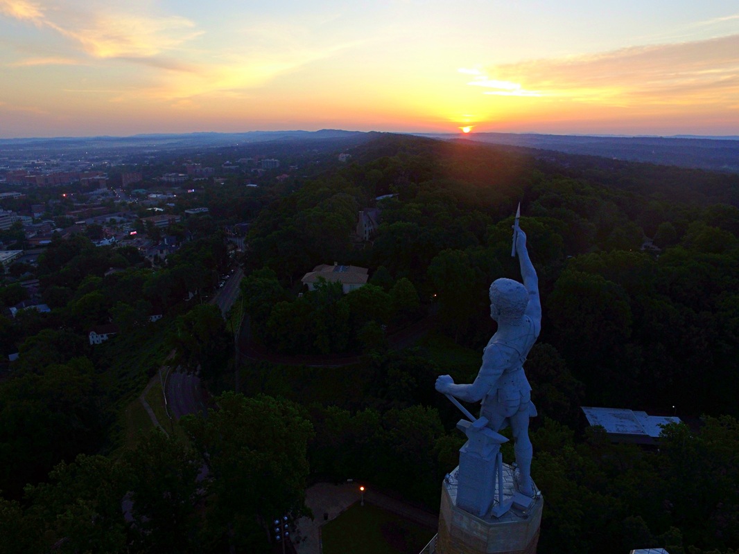 Vulcan Man Statue in Birmingham, Alabama. The Vulcan statue is the largest cast iron statue in the world, and is the city symbol of Birmingham, Alabama, reflecting its roots in the iron and steel industry. The 56-foot (17 m) tall statue depicts the Roman god Vulcan, god of the fire and forge. It was created as Birmingham’s entry for the Louisiana Purchase Exposition (1904 World’s Fair) in St. Louis, Missouri. The statue is the world’s largest iron-ore statue, and among the nation’s tallest (Wikipedia)