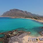 Blue beach looking towards Stavros mountain in Chania, Crete,Greece