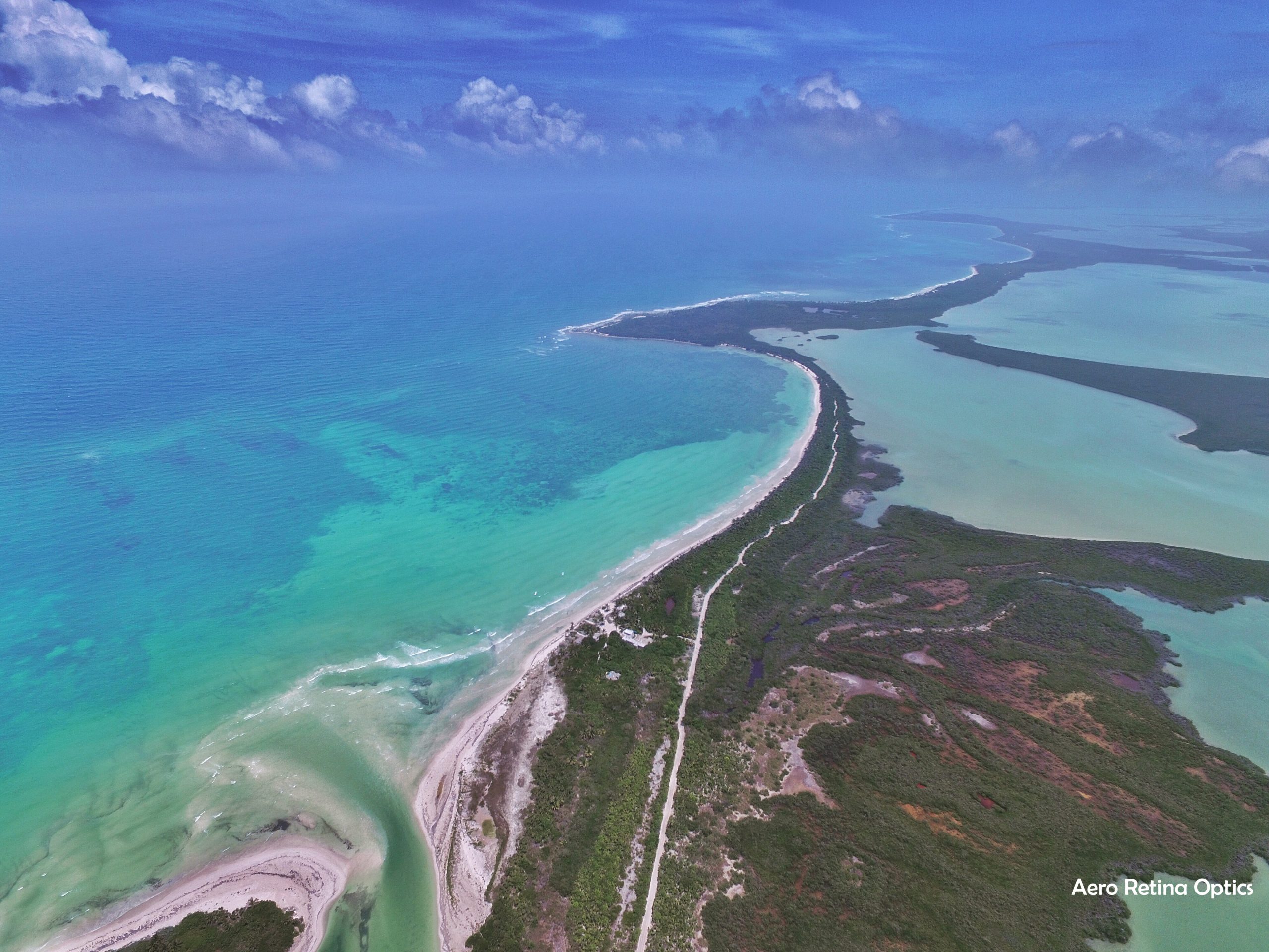 The Mayan Biosphere of Sian Kaan in eastern Mexico protects much of the natural beauty of the region. The stunning blues of the Caribbean seamlessly blend into the blues of the clear blue sky.