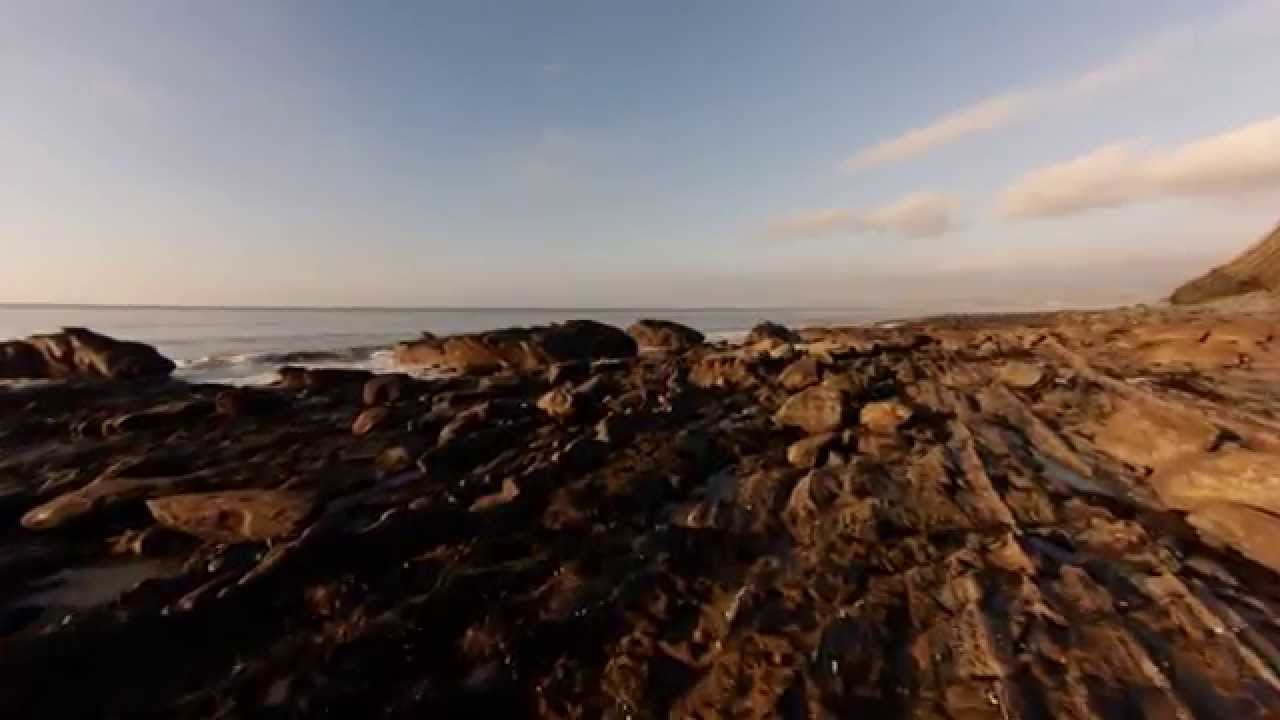 Low flight over dramatic coastal scenery on secluded beach near the mid Wales seaside town of Borth.