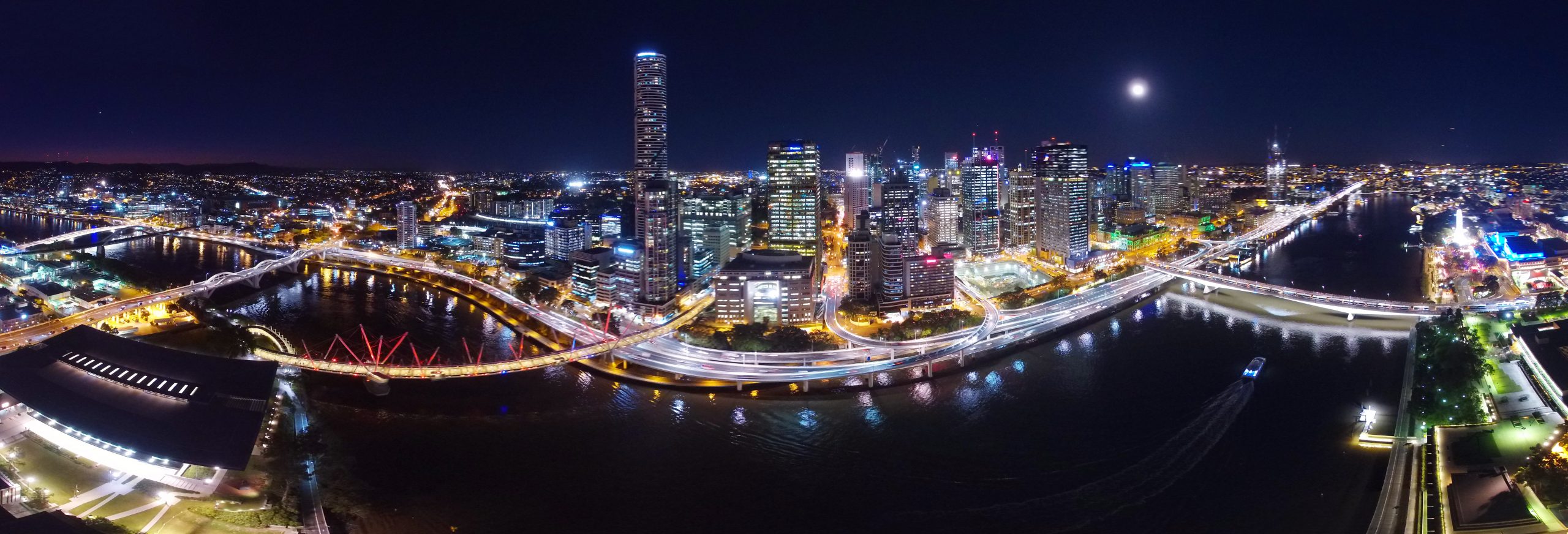 10 image panorama showing Brisbane at night