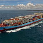 Lars Maersk, a 267 metre container ship turning at 17 knots
