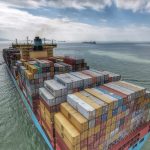 Colourful Containers – 262 metre container ship in rainy weather – Drone Photography