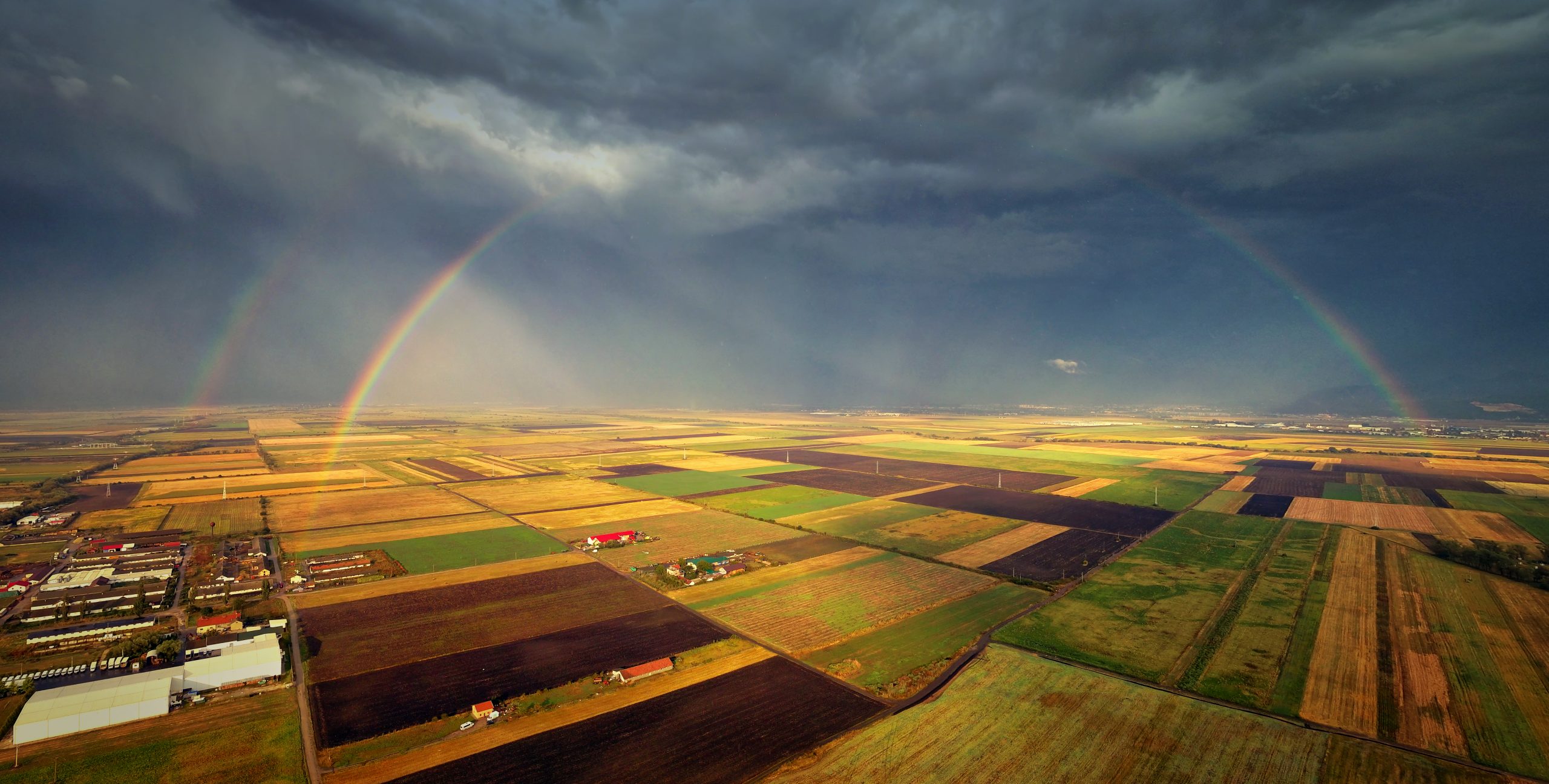 A double rainbow captured by drone. Flying in rain was no problem with the Mavic.