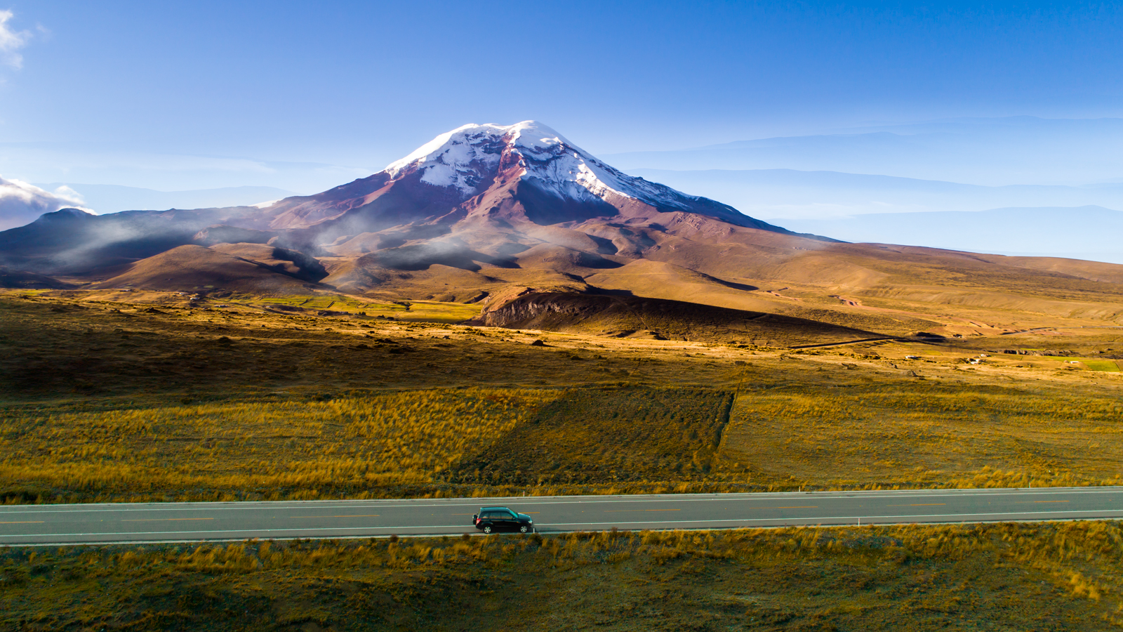 Es un gran contraste lo que hay entre el frío de la Región Sierra y el calor y humedad de la Región Costa, un despejado cielo celeste, pocas nubes blancas y un páramo extenso, con sus características plantas, nos recibieron al ingresar y presenciar al imponente Chimborazo, donde se pudo realizar esta fotografía aérea con mi equipo de filmación.