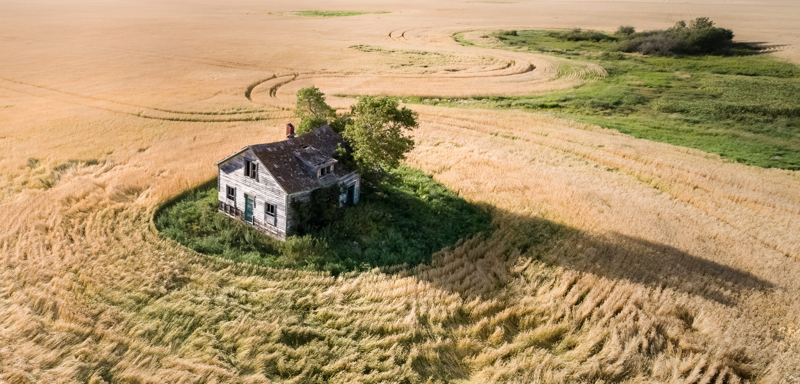 Old farmhouse in a field. The crop is trampled in places and makes me think of crushed velvet.