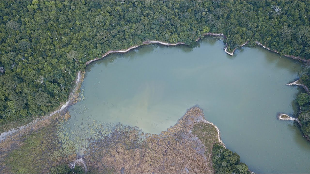 Découverte d’un lac dans la forêt gabonaise, à environ 1.6 Km de la piste nous avons découvert un lac qui est entouré de la forêt et très certainement difficile d’accès. Pas de rivières qui semblent alimenter le lac non plus (Drone Mavic Pro DJI)