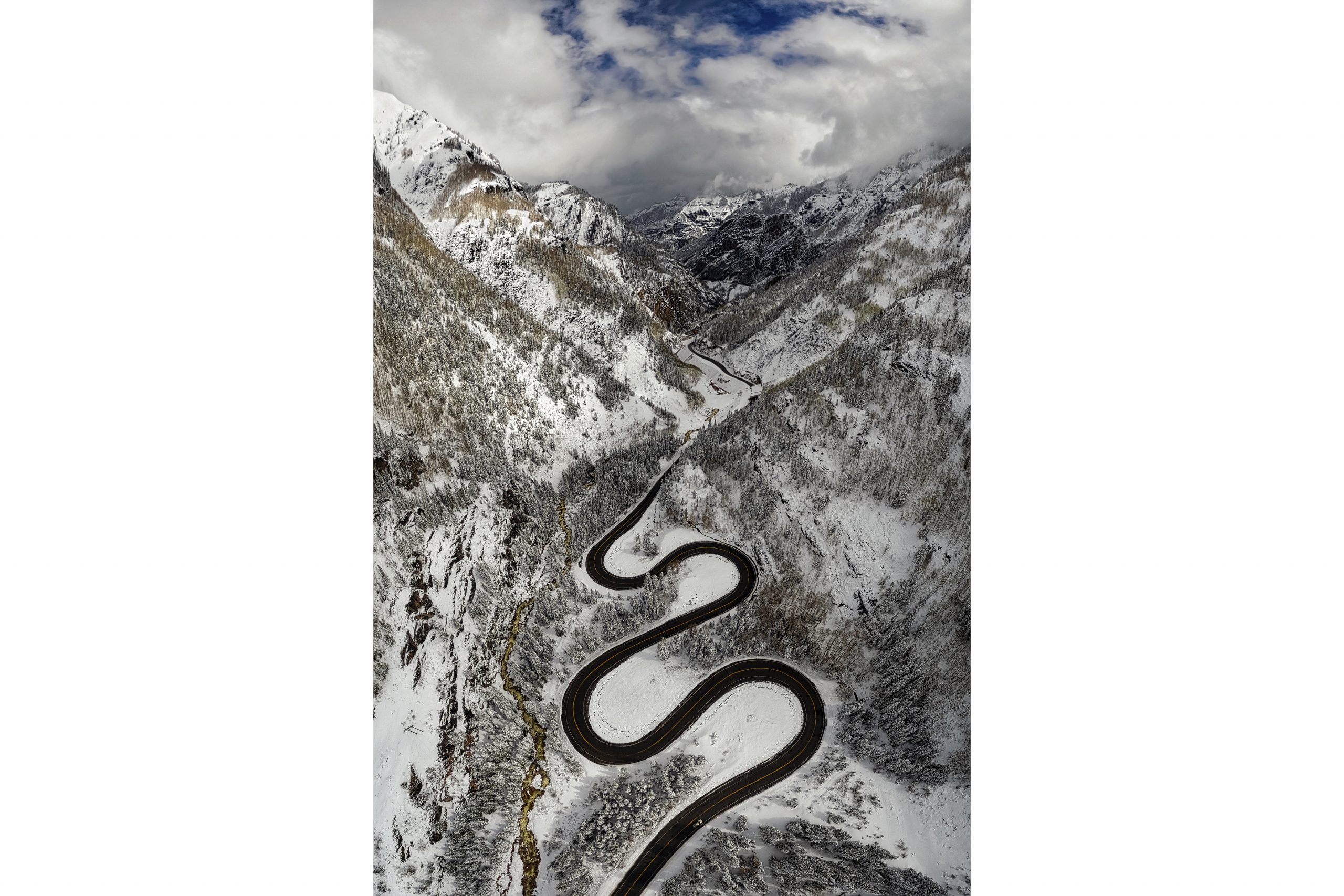 Parting clouds point the way to Ouray as Springtime snow melts off the Million Dollar Highway