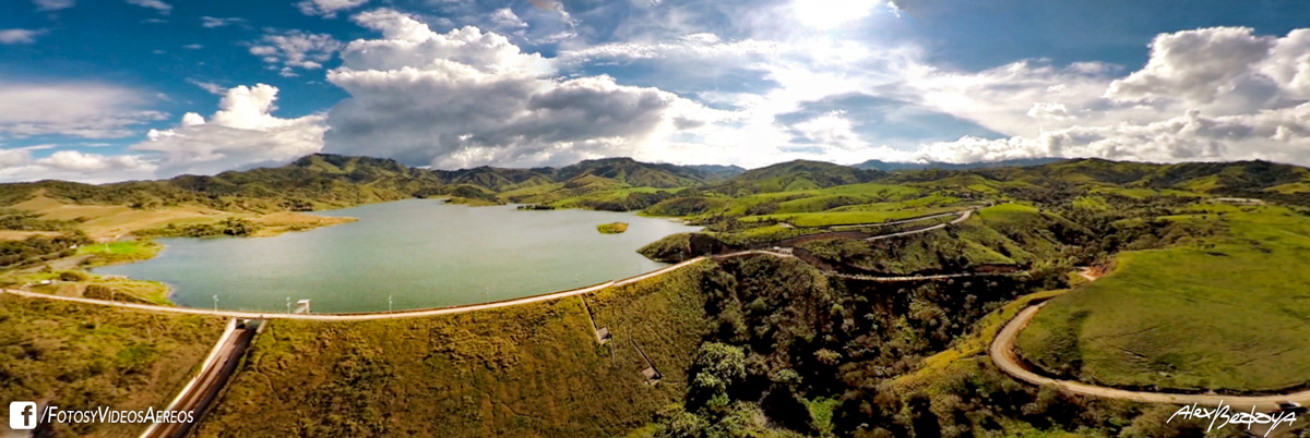 Fotografia tomada desde el Phantom 2 del embalse Sara Brut, denominado también embalse de Guacas, ubicado en el municipio de Bolívar, en el Valle del Cauca (Colombia). Su superficie de agua es de 71 km² y su profundidad media es de 60 m.