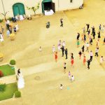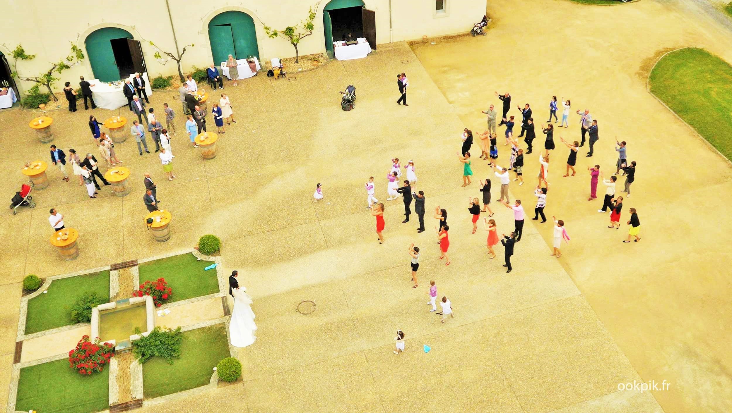 Une photo par drone d’un flash mob improvisé pendant un mariage. Flash mob during wedding, shooting by drone