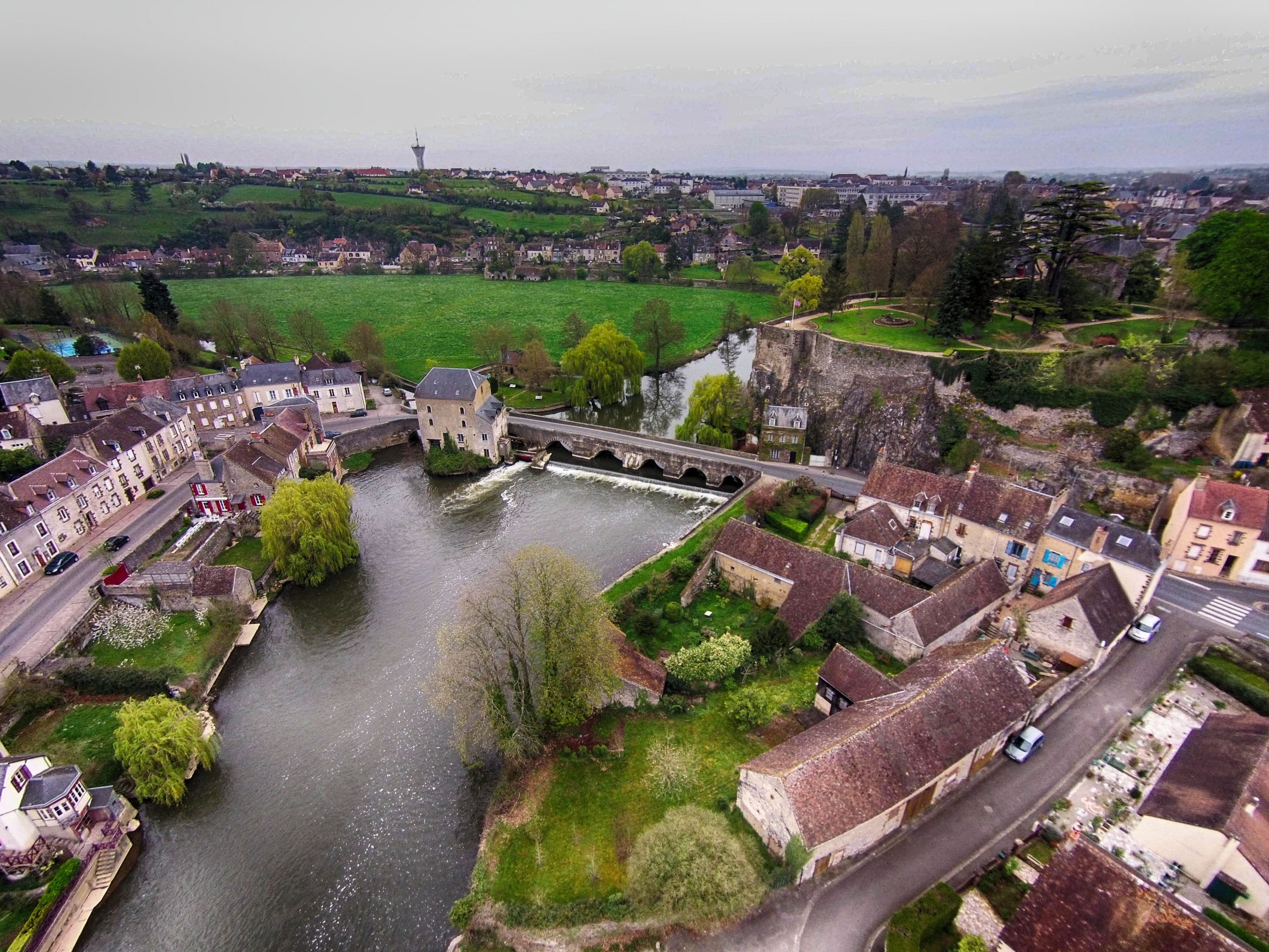 Fresnay sur Sarthe la Rivière et le Château ,Fresnay sur sarthe,Sarthe,France