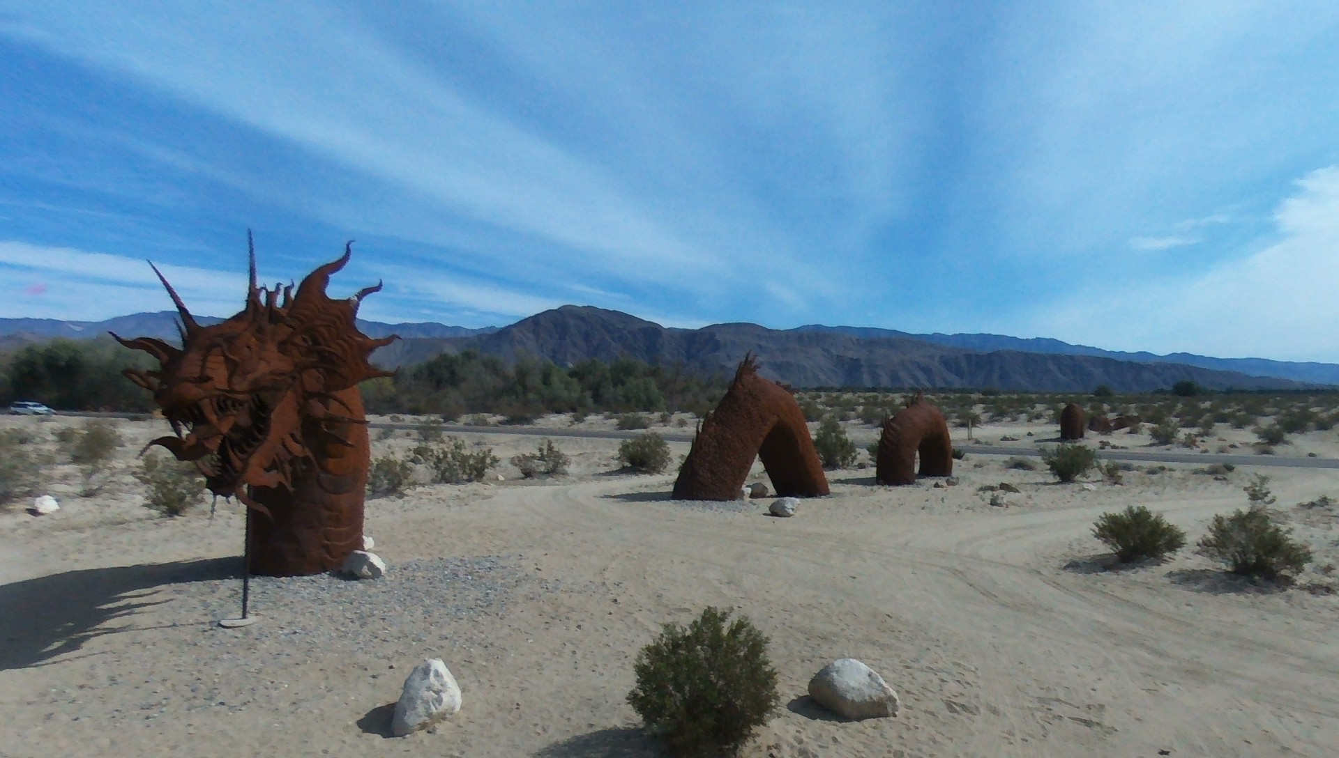 Borrego Springs is a nice little town about 2 hours away from my house in Carlsbad. We have a little vacation home out here and like to spend the weekends here from time to time. Ever since I got my first drone, I have really enjoyed flying around these sculptures.