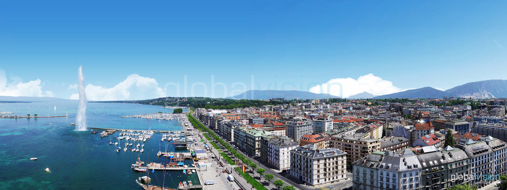 Enjoy the aerial view above beautiful Geneva City. See more drone photo at www.globalvision.ch