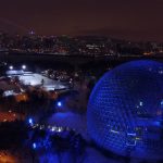 Night shot of the Biosphere with Montreal in the background…