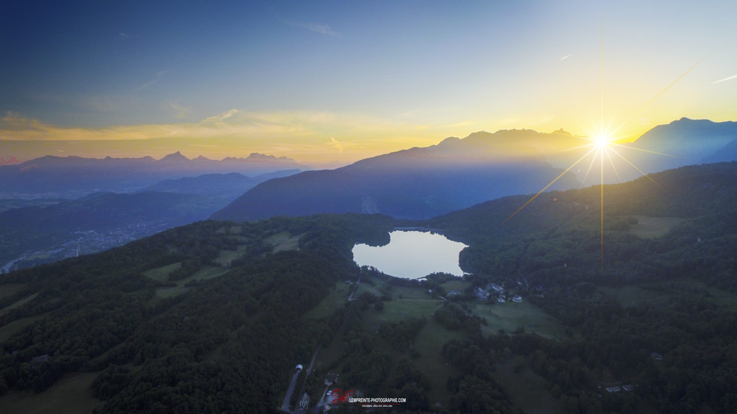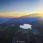 An overview of a lake, the city of Grenoble on background