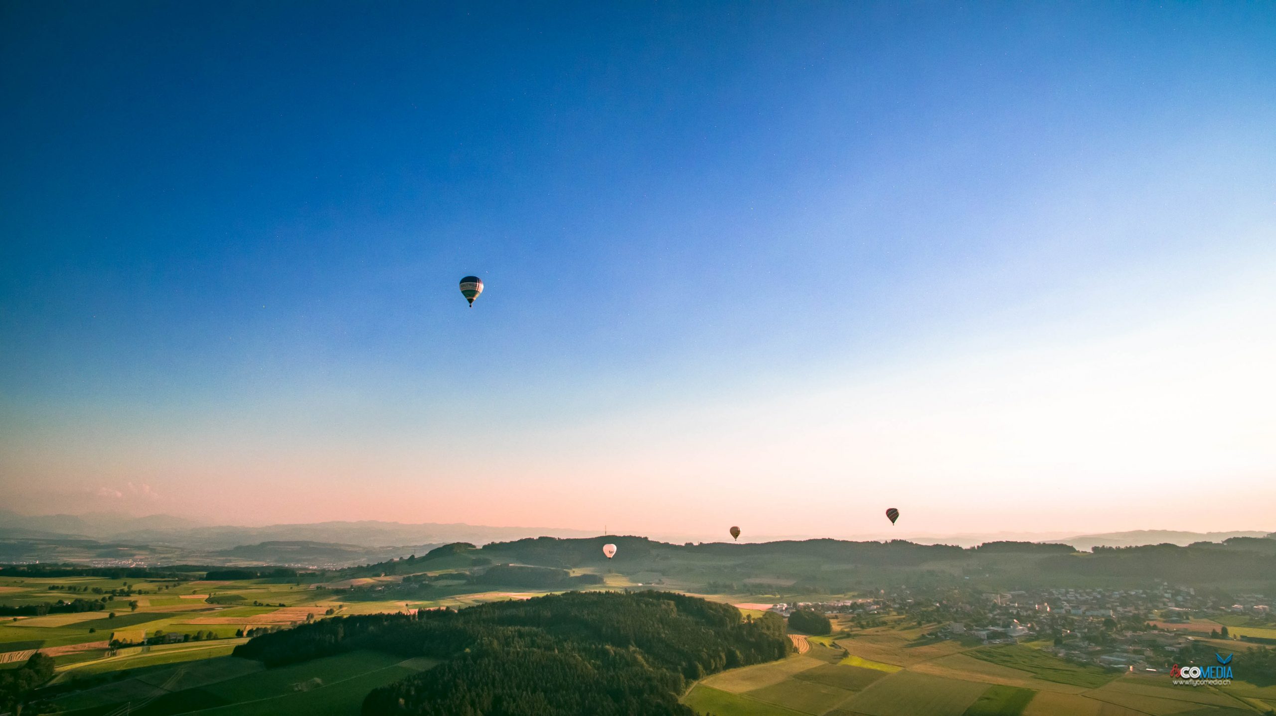 4 Heissluftballone im Abendhimmel