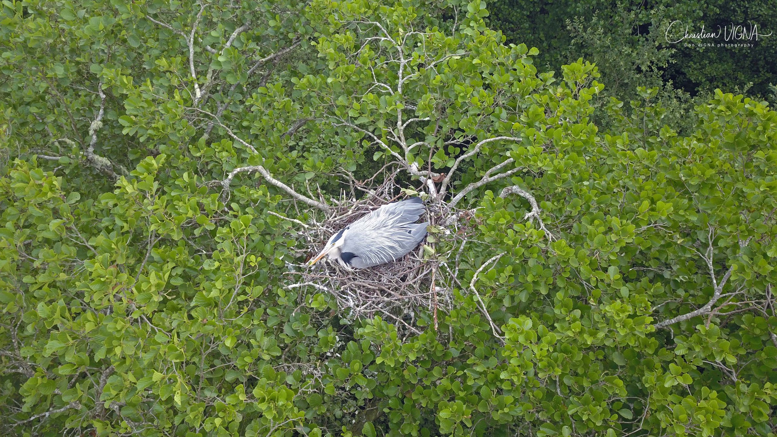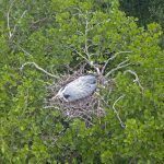 Le Héron cendré construit un très grand nid avec des rameaux secs, des branches et des laîches. Il nidifie en grandes colonies souvent sur un seul arbre.