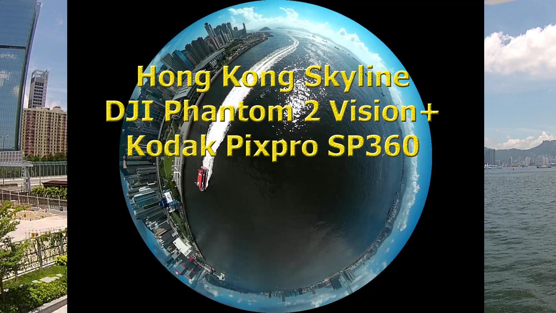 Hong Kong Skyline seen through the Kodak Pixpro SP360 mounted on a DJI Phantom 2 Vision+, flying with 2 cameras on the DJI Phantom 2 Vision +