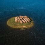 Hay bales on little island