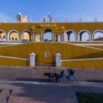una caleza espera a su proximo cliente a un costado del Exconvento en Izamal Yucatán México