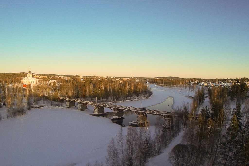 February the 28th 2016, the Lejonström bridge over the river in Skellefteå, Sweden. Swedens oldest wooden bridge, built in 1737, and the second longest.