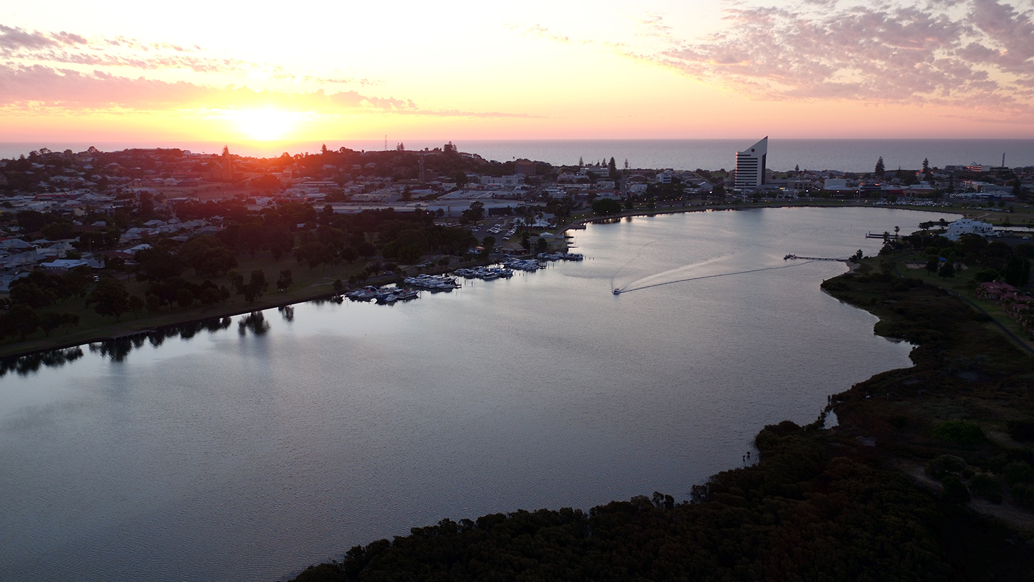 A late Saturday afternoon fly over the inlet beside Bunbury’s CBD