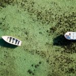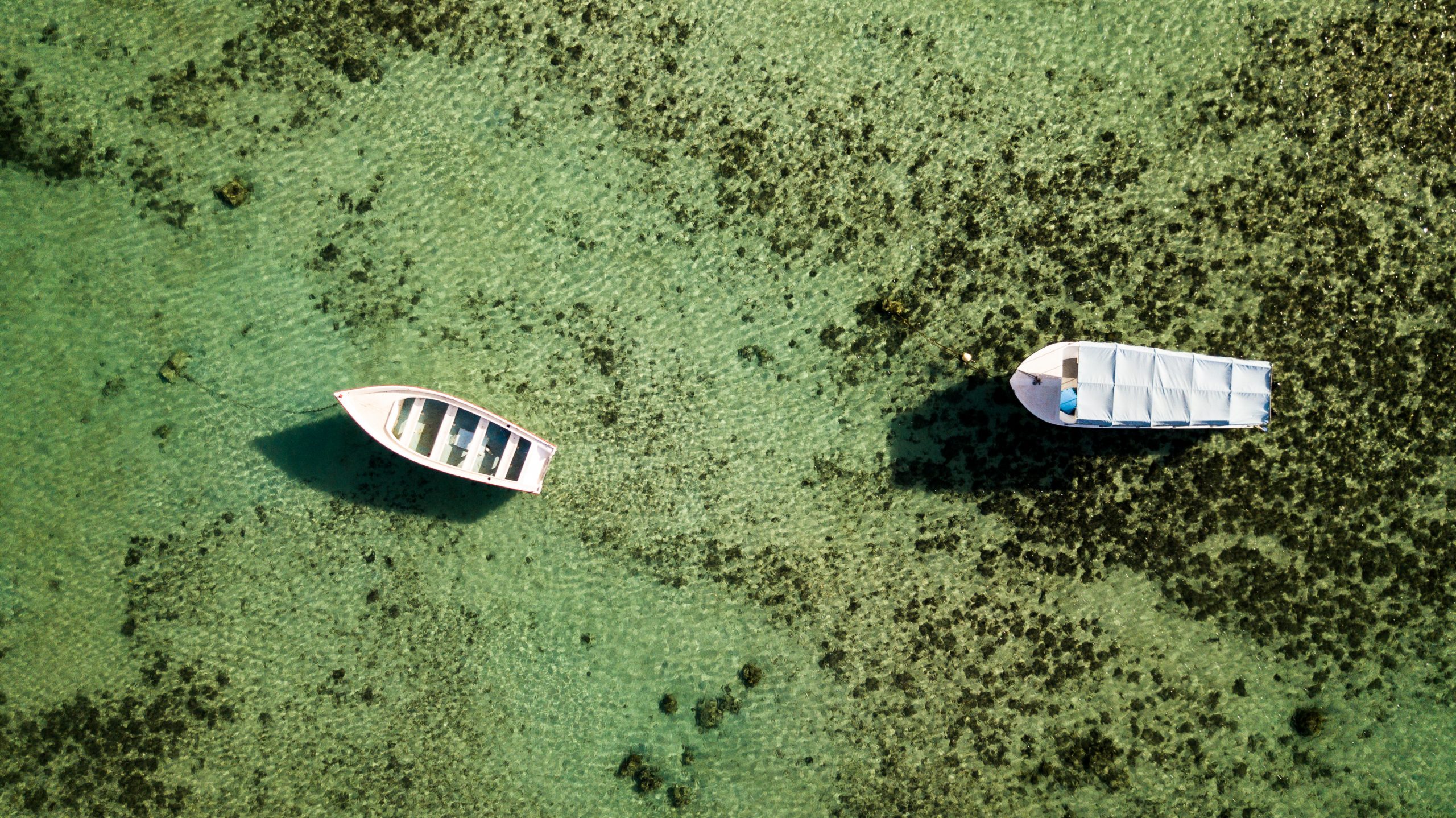 Boats in the crystal clear turquoise water of the indian ocean