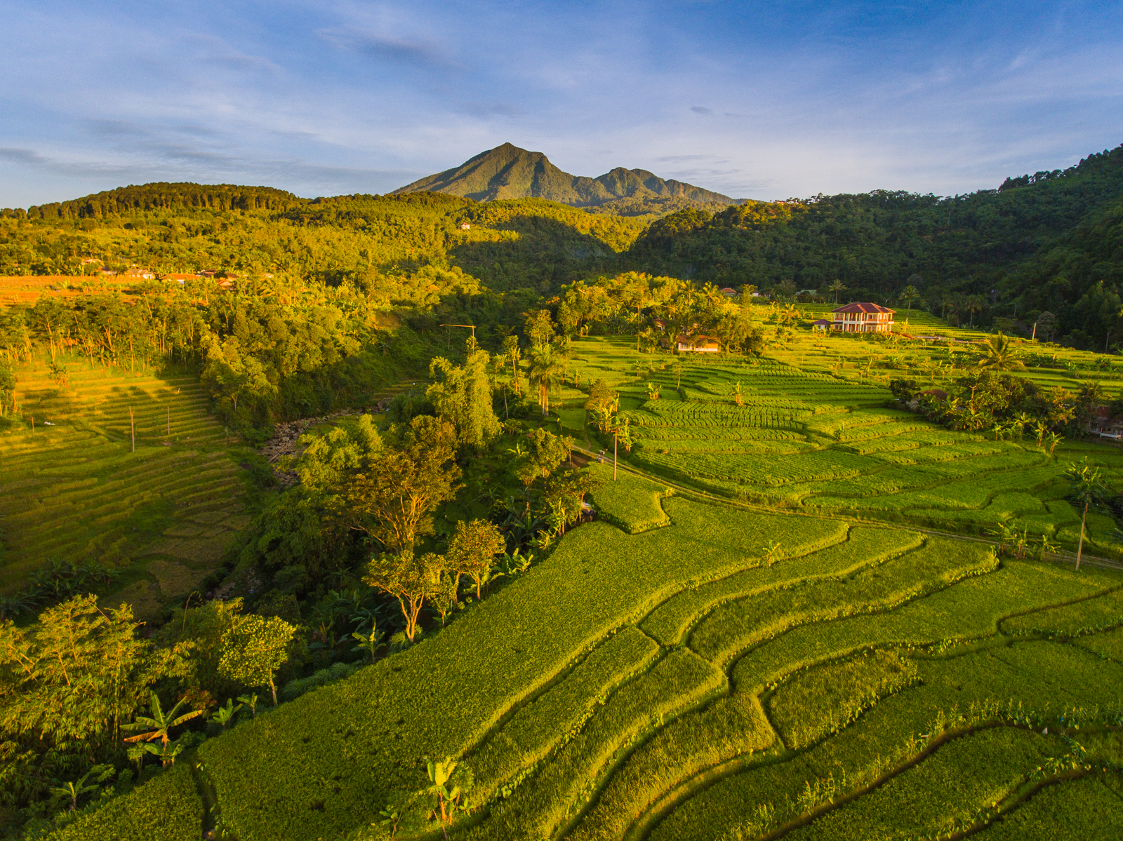 Indonesia with its many volcanos known to be a lush and fertile country. Rice fields, forests and mountain bind together in this image. To get all of them in a good composition, and even with beautiful lighting is quite a challenge.