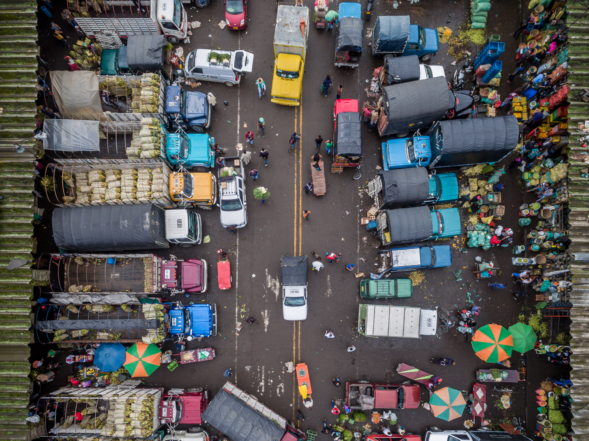 Chaos of colours, textures, people, cars, trucks, food, spices, etc, at Corabastos, Bogota´s main market. Photo taken in collaboration with Alejandro Pabon.