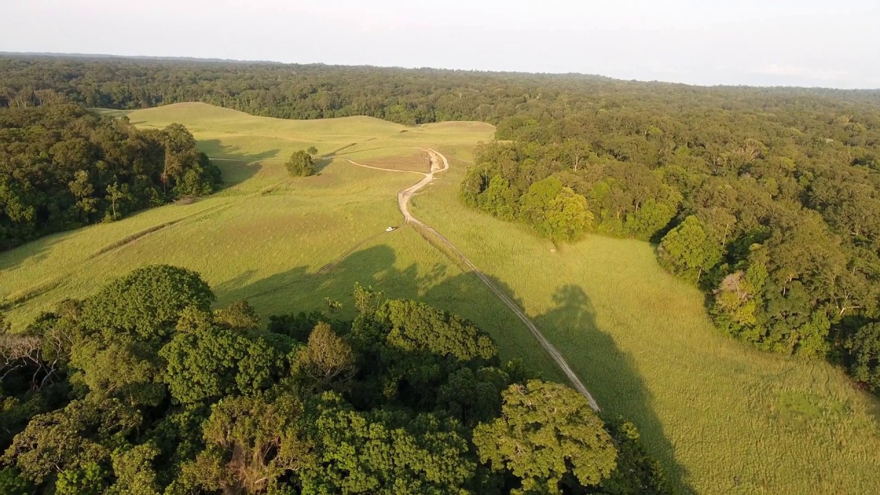 Des buffles de forêt dans la plaine de Ndouni au Gabon, plaine et savane de Ndouni, bord de mer.