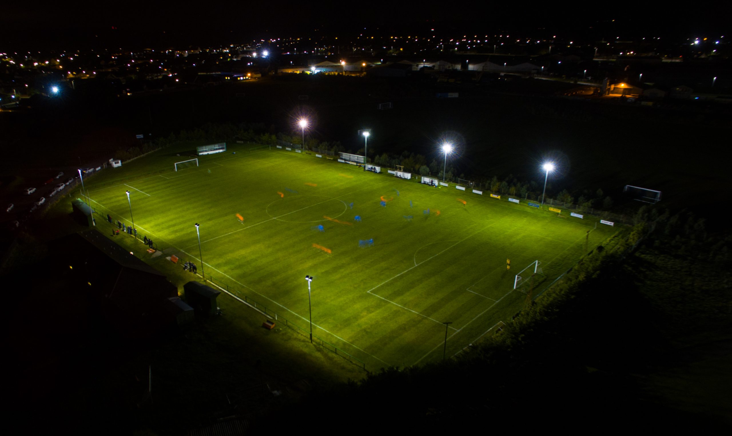 practicing my night time skills with a game of footy, I like how the players blur more the faster they ran.