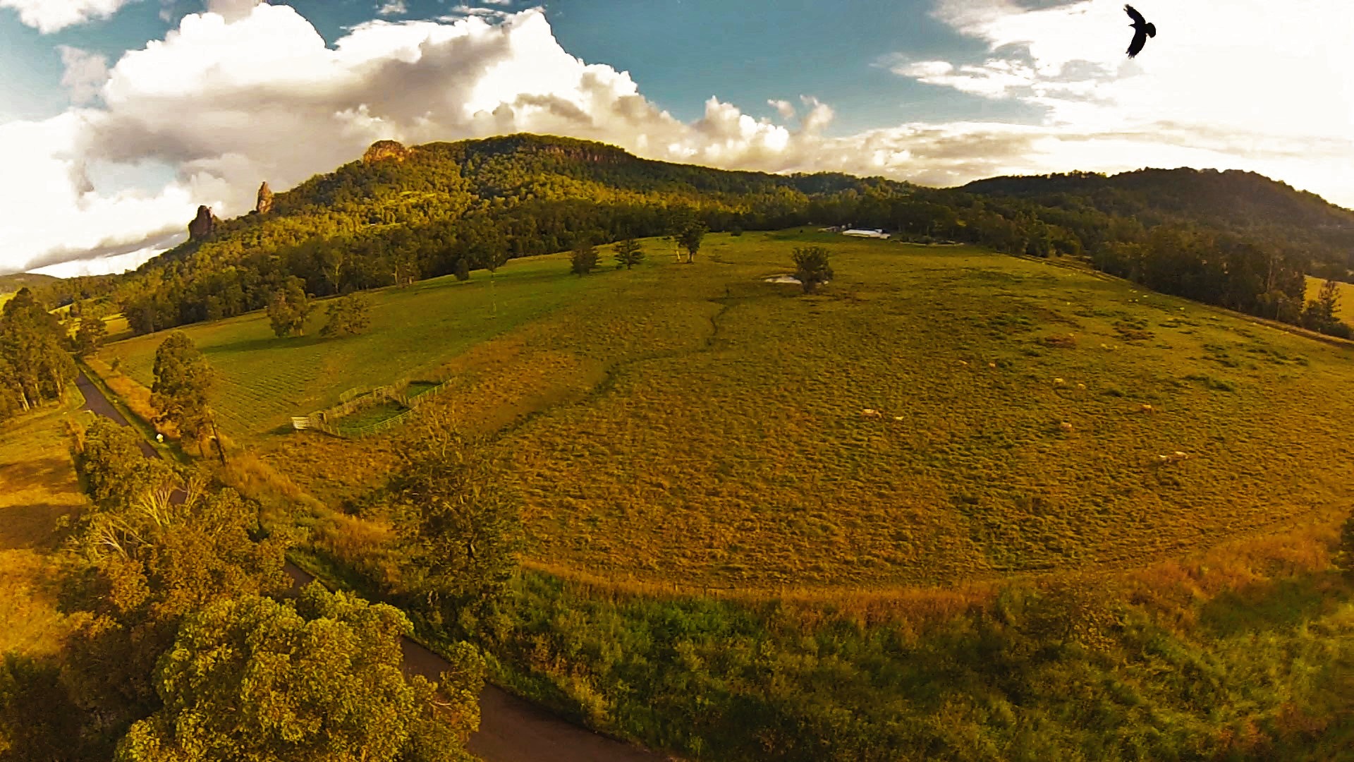 Nimbin Rocks on the back ground and an eagle flying capture by GoPro!