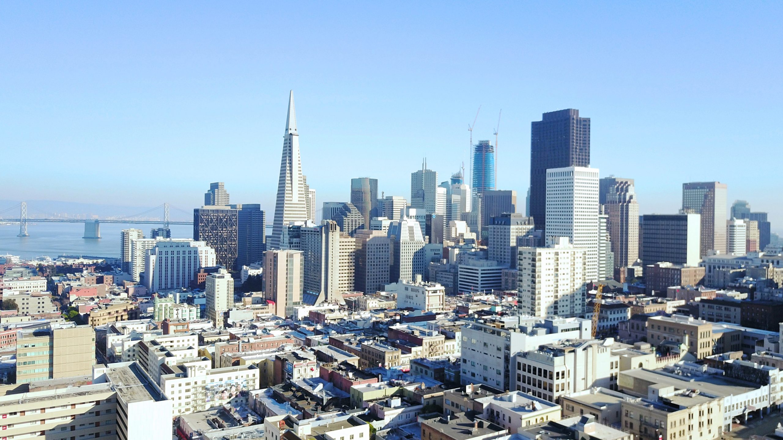 View of Financial District (aka FiDi) from North Beach. Launched DJI Mavic Pro from rooftop. Tropical/Beach photos and videos on couchsailors.com – follow our journey as we sail around the world!