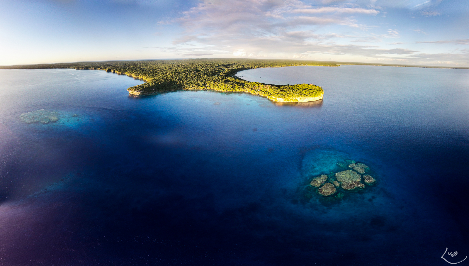Coral reefs in front of the promontory of the Chapel of Easo, Lifou, New Caledonia. 15 photos panorama.