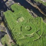 An excavated Broch Site in Caithness, an Iron Age settlement on the cliffside.