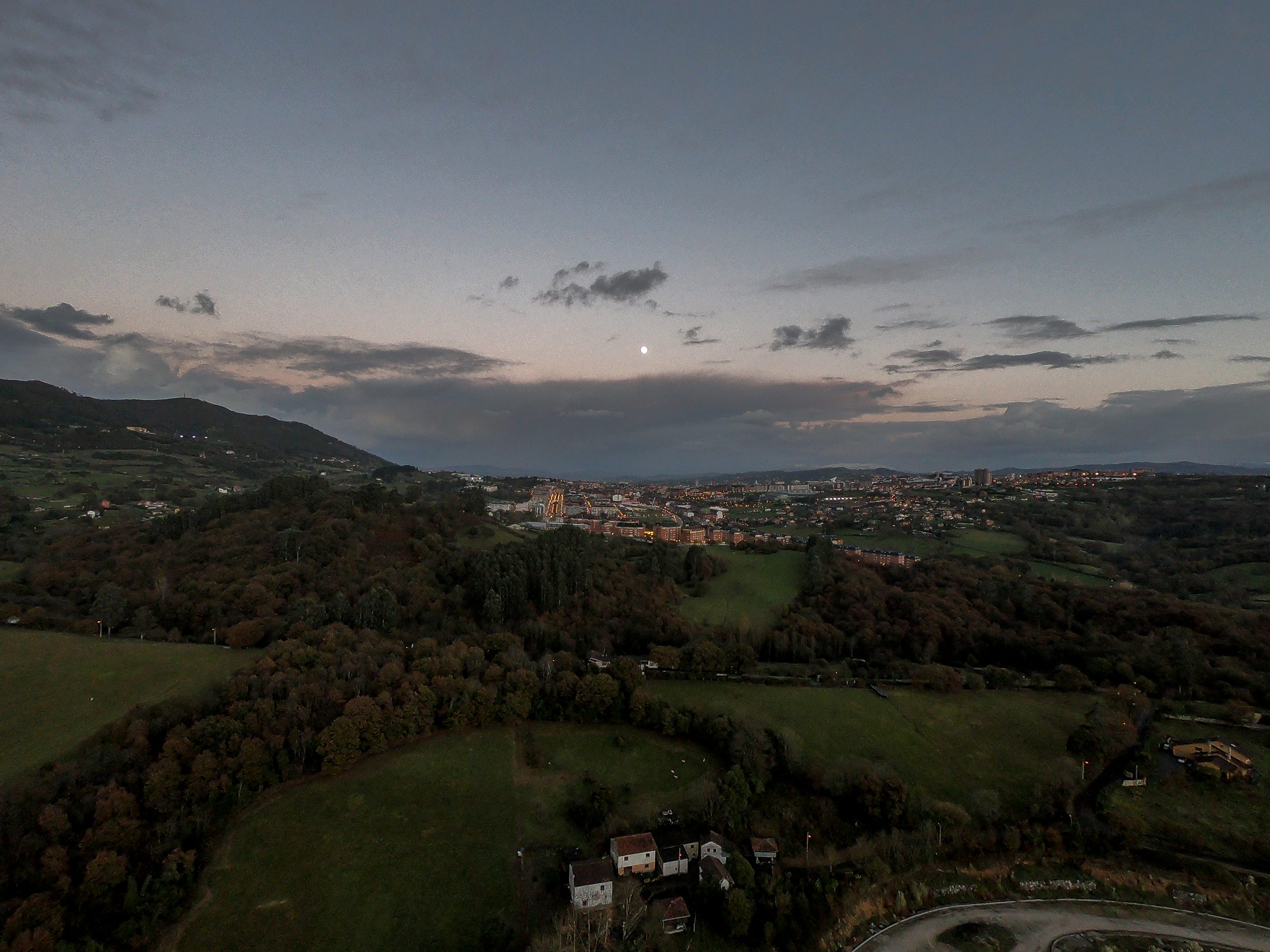 Atardecer de invierno sobre Oviedo, desde nuestro drone gopro karma a 120 metros de altura en Les Mazes.