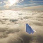Paper plane above clouds