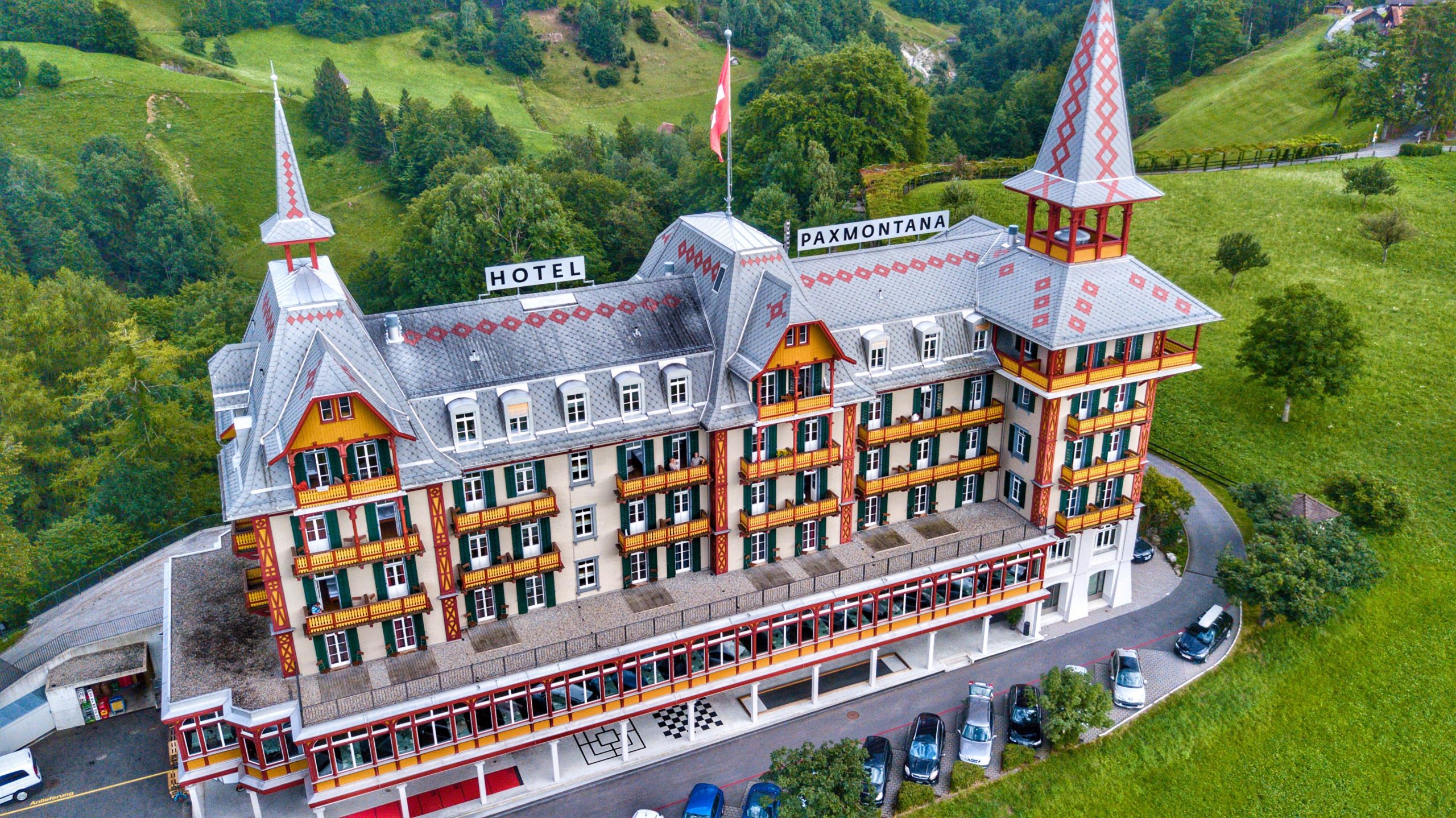 Areal view on the nicely renovated Jugendstil hotel Pax Montana – meaning ‘mountain peace’