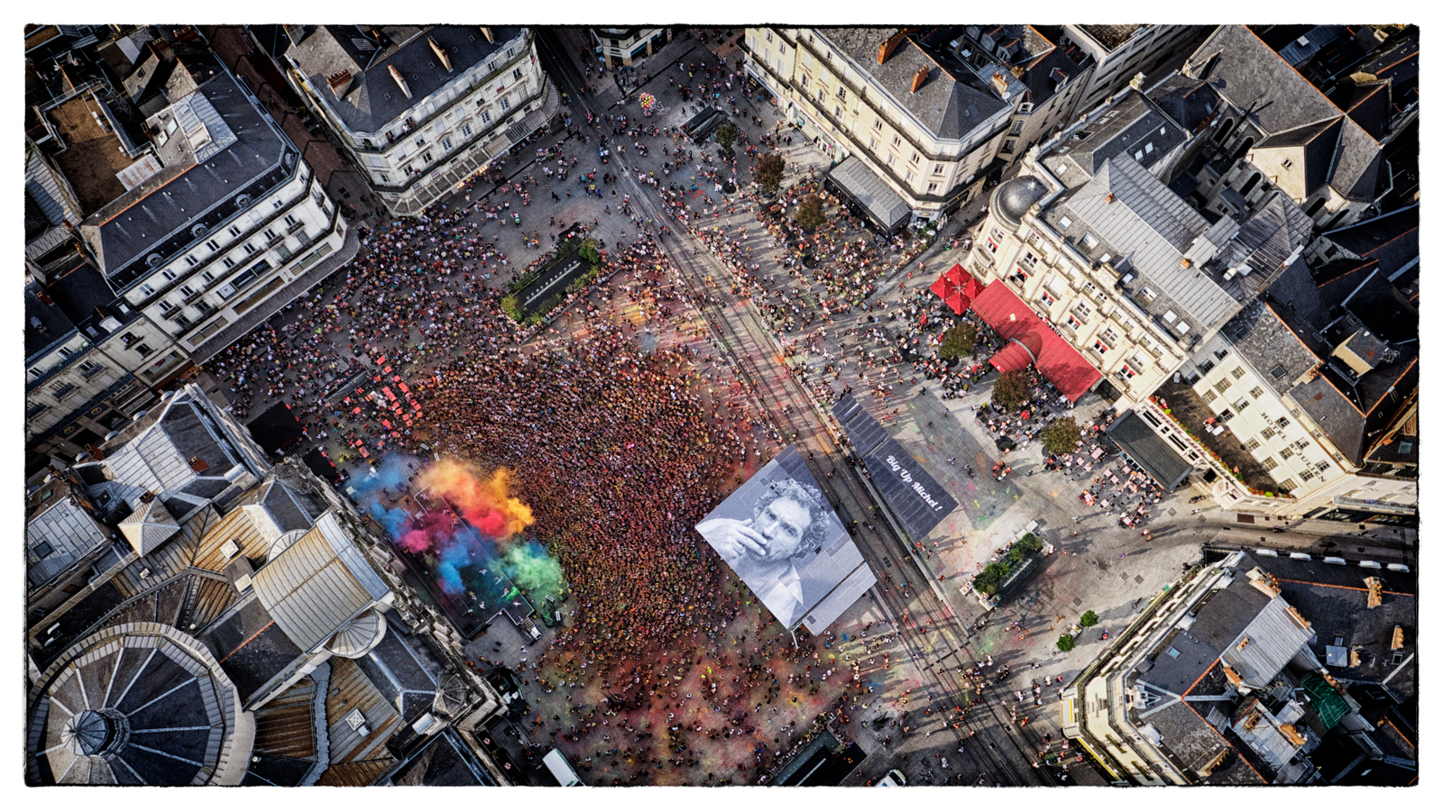Photo réalisée lors des Accroches-Coeur à Angers place du ralliement. La chance a été de shooter juste au moment ou les couleurs ses ton envolées…