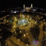 Vista nocturna de la plaza principal de la cuidad de Mérida, Yucatán México